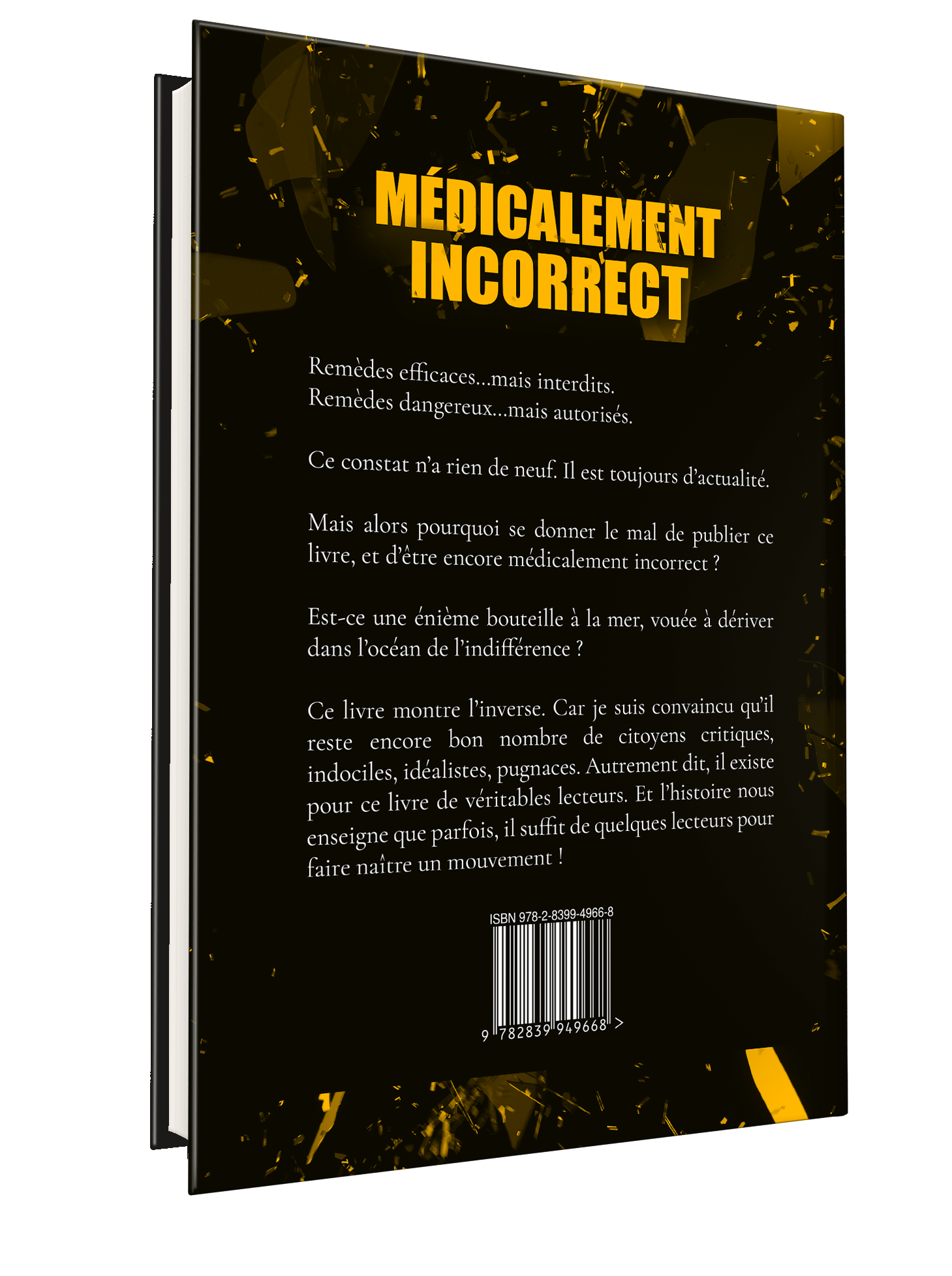 Parce qu’être « Médicalement incorrect », ce n’est pas faire de la provocation, ce n’est pas avoir le goût de déplaire, c’est seulement vouloir être le plus utile possible.